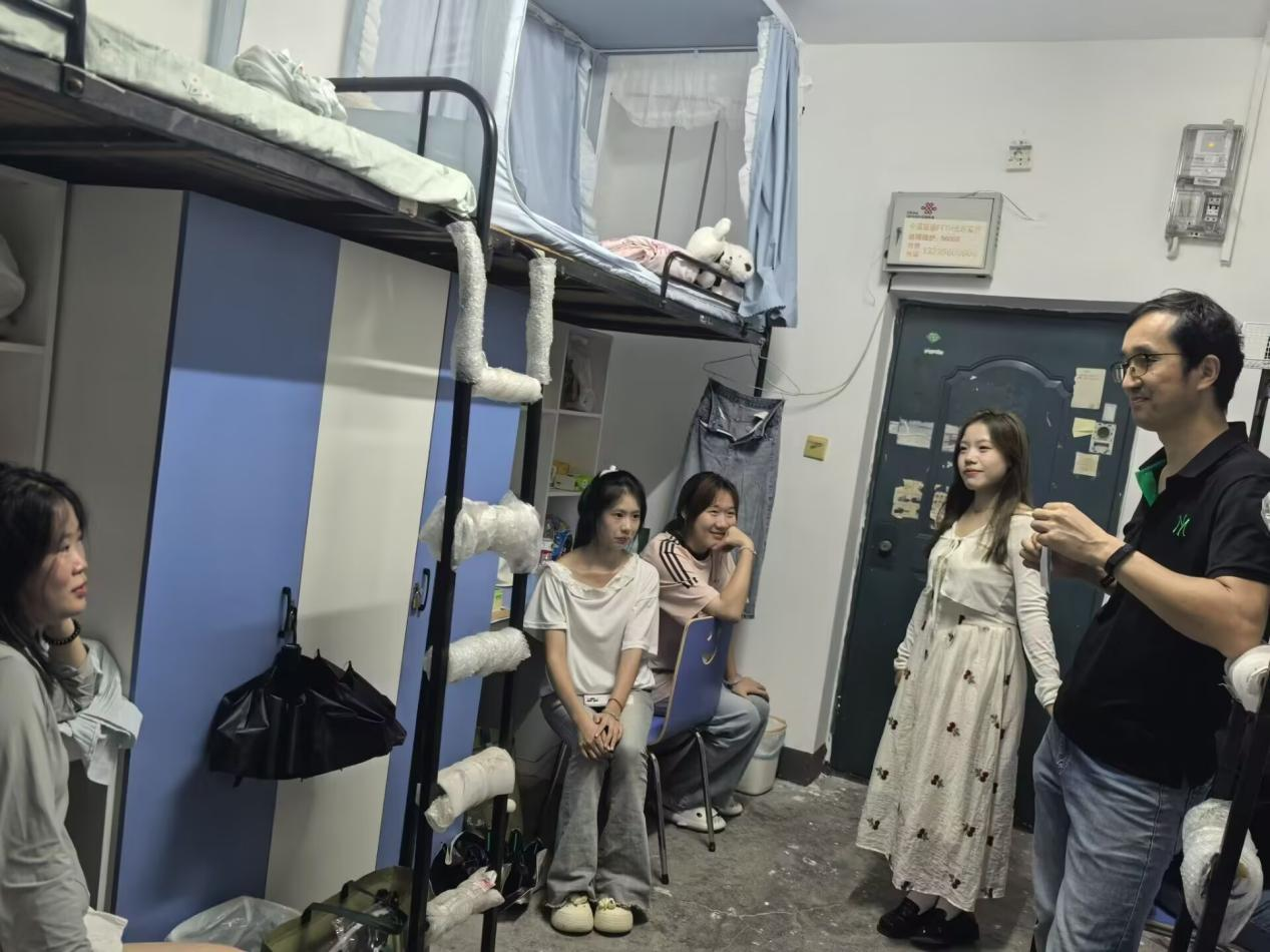 新闻网讯(通讯员 吴泓萱/文 何遥/摄)为深入了解 2025 级新生入学后的住宿环境与适应情况,搭建师生沟通桥梁,传递学院关怀与温暖,9 月 14 日,公司统筹学院领导、各年级辅导员及新生班主任,分时段开展新生宿舍走访活动,用细致交流与贴心指导,为初入校园的新生注入温暖动力。