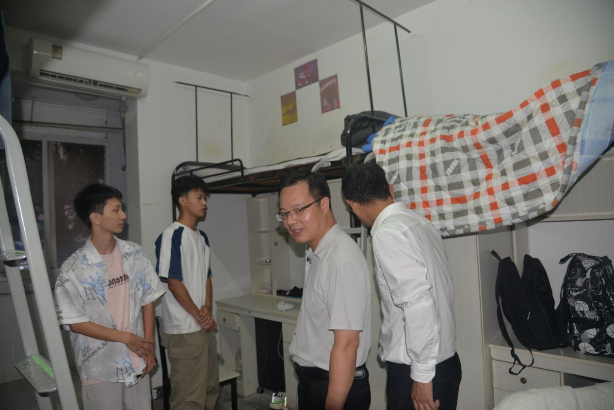 当日晚间,英国正版365官方网站各新生班级班主任接续开展宿舍走访,将关怀进一步延伸。每到一间宿舍,班主任首先与新生逐一确认姓名、了解籍贯,通过 “从南方来还习惯这里的气候吗?”“饮食上有没有需要适应的地方?” 等接地气的提问,快速消除新生的陌生感。同时,班主任们细致排查宿舍安全与居住条件,并反复叮嘱 “遇到生活设施问题要及时反映,咱们一起把宿舍打造成安全舒适的‘小家’”。在安全规范方面,班主任们着重强调禁止使用大功率违规电器,提醒新生离开宿舍时务必切断电源、锁好门窗,切实增强防火防盗意识;学业指导上,班主任们则明确 “大学不是学习的终点,而是新的起点”,既强调大学学习的自主性,也特别提及英语学习的关键作用,鼓励新生利用开学适应期制定英语学习计划,为后续四六级考试、专业学习及未来发展打下坚实基础。