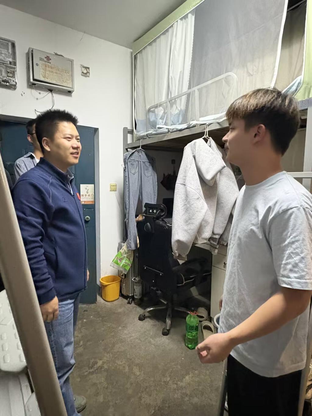 (通讯员 代派领/文 段文洁/摄)为深入了解员工生活环境,进一步加强员工宿舍的卫生与安全管理,排查潜在风险,营造整洁、文明、安全、和谐的学习生活氛围, 9月25日晚7点英国正版365官方网站学工办主任黄承石,团委书记付雪娇,辅导员唐玉婷,兼职辅导员郑雪娅,高明銮,宿委会的员工干部集中查寝。